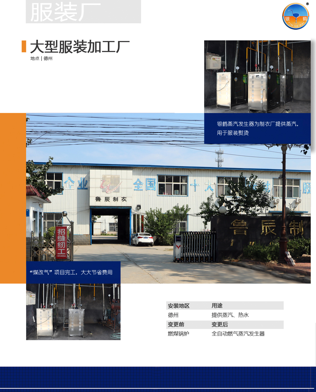 銀鶴蒸汽發(fā)生器為德州服裝廠進(jìn)行鍋爐房改造
